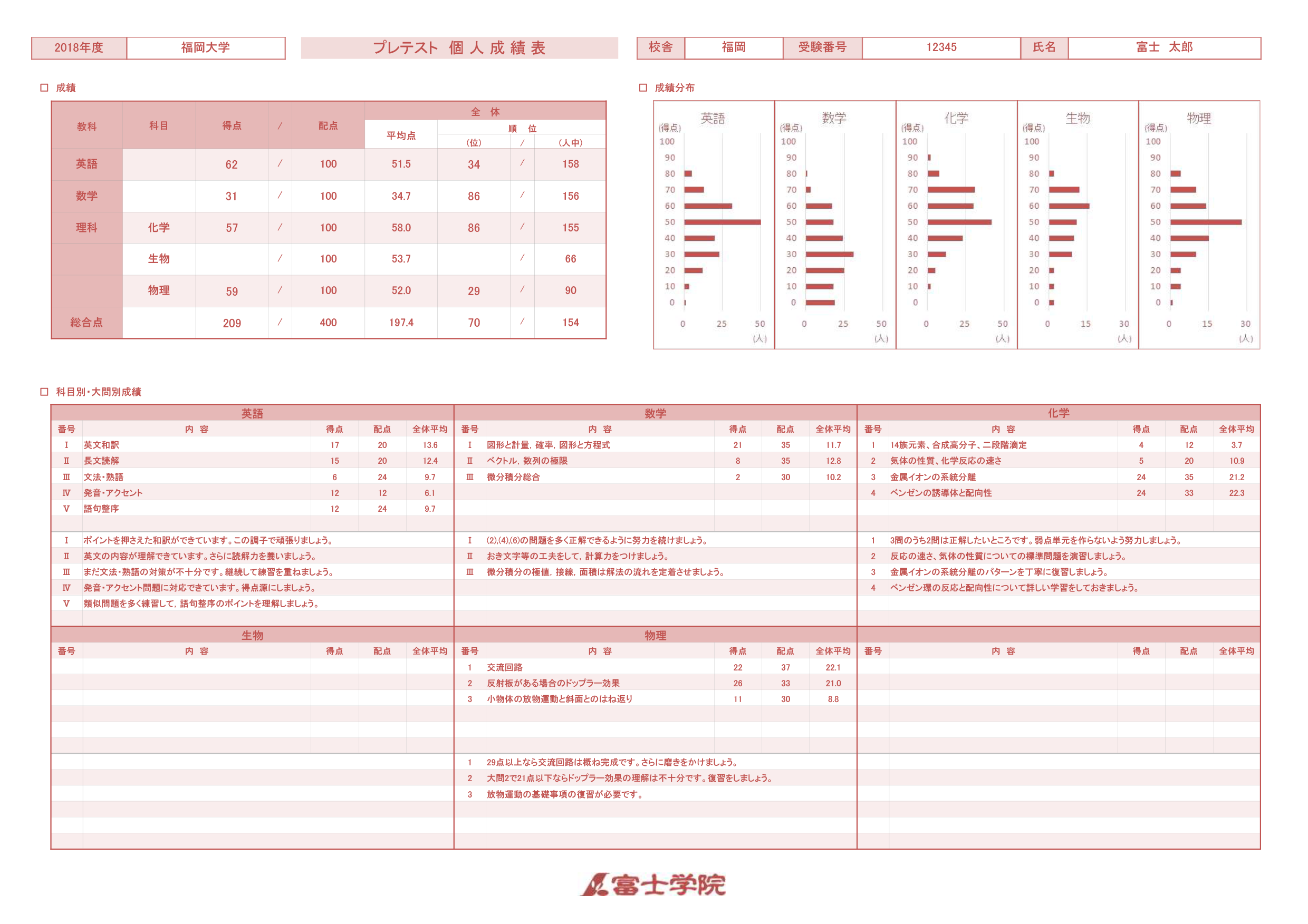 富士学院のプレテストは、これまで蓄積してきた大量の入試データをもとに作成しており、
