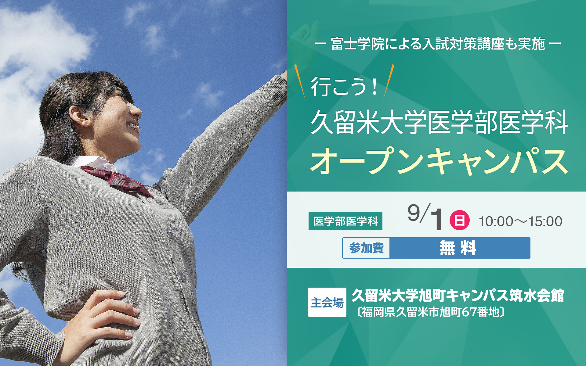 昨年に続き「富士学院講師による英語・数学の入試過去問解説を含む入試対策講座」も実施させていただきます。 来年度、久留米大学医学部医学科を目指す生徒・保護者の方はぜひこの機会をご利用ください。
