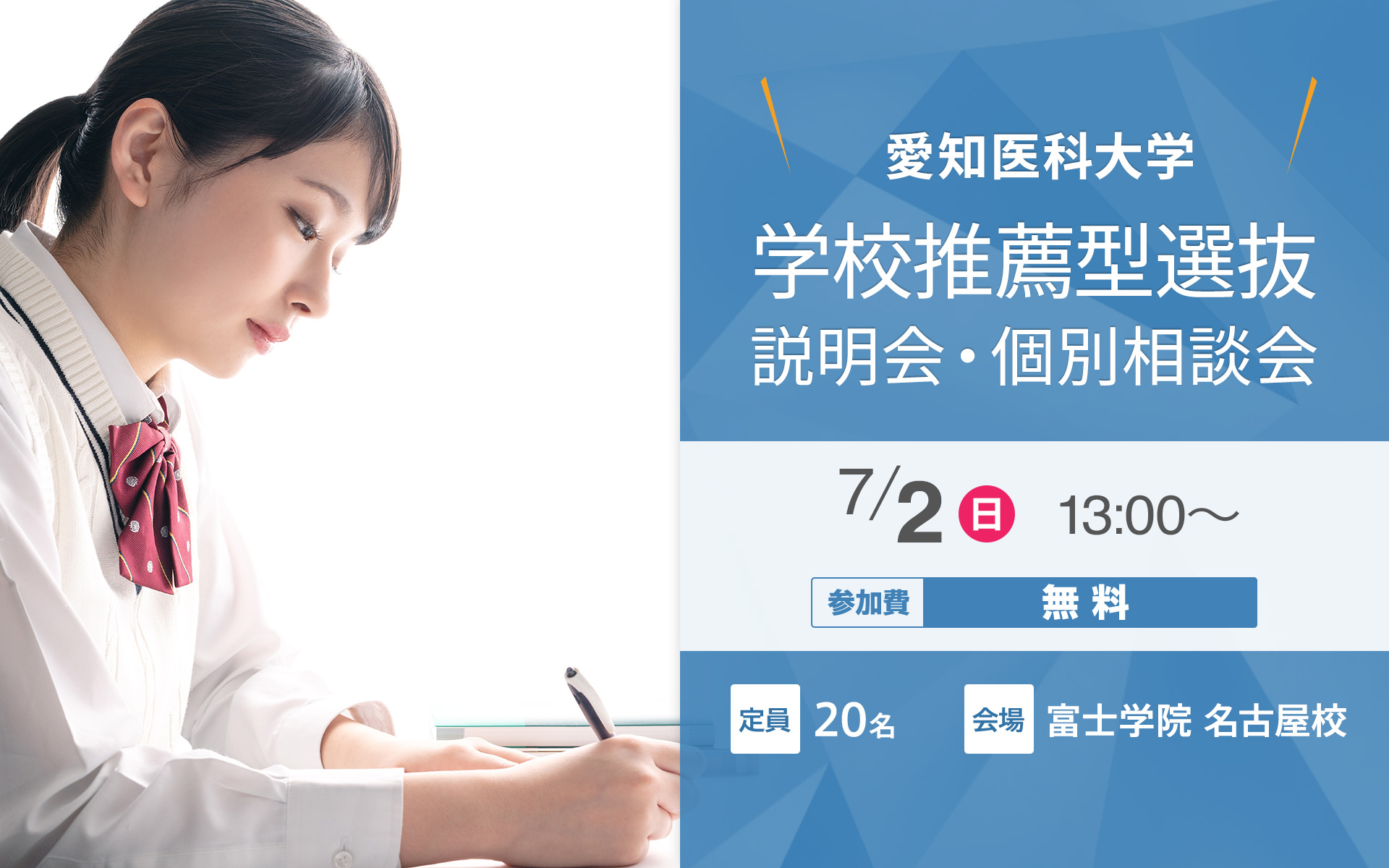 また、個別相談会では愛知医科大学教授との直接面談も可能ですので、是非この機会をご利用ください。