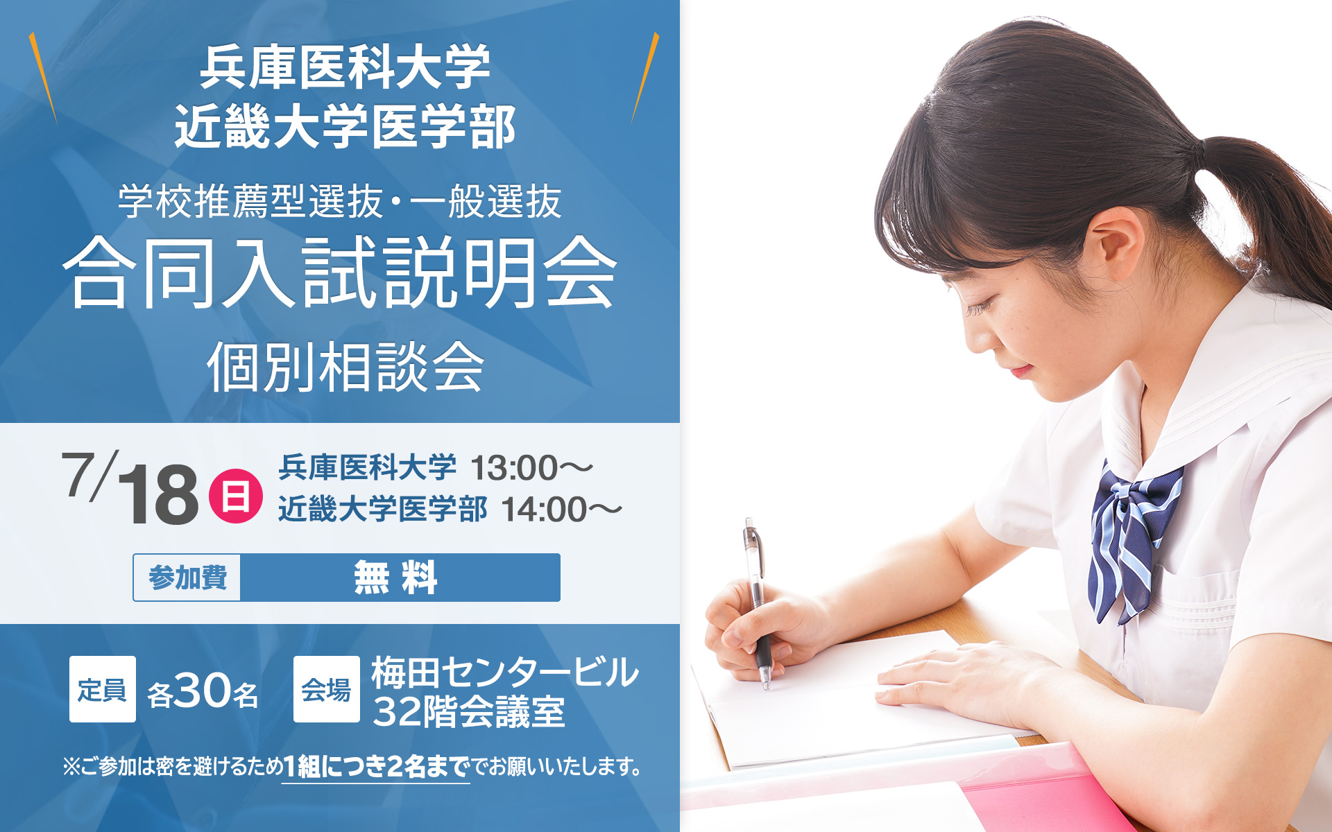 兵庫医科大学・近畿大学医学部入試ご担当者と直接面談が可能
