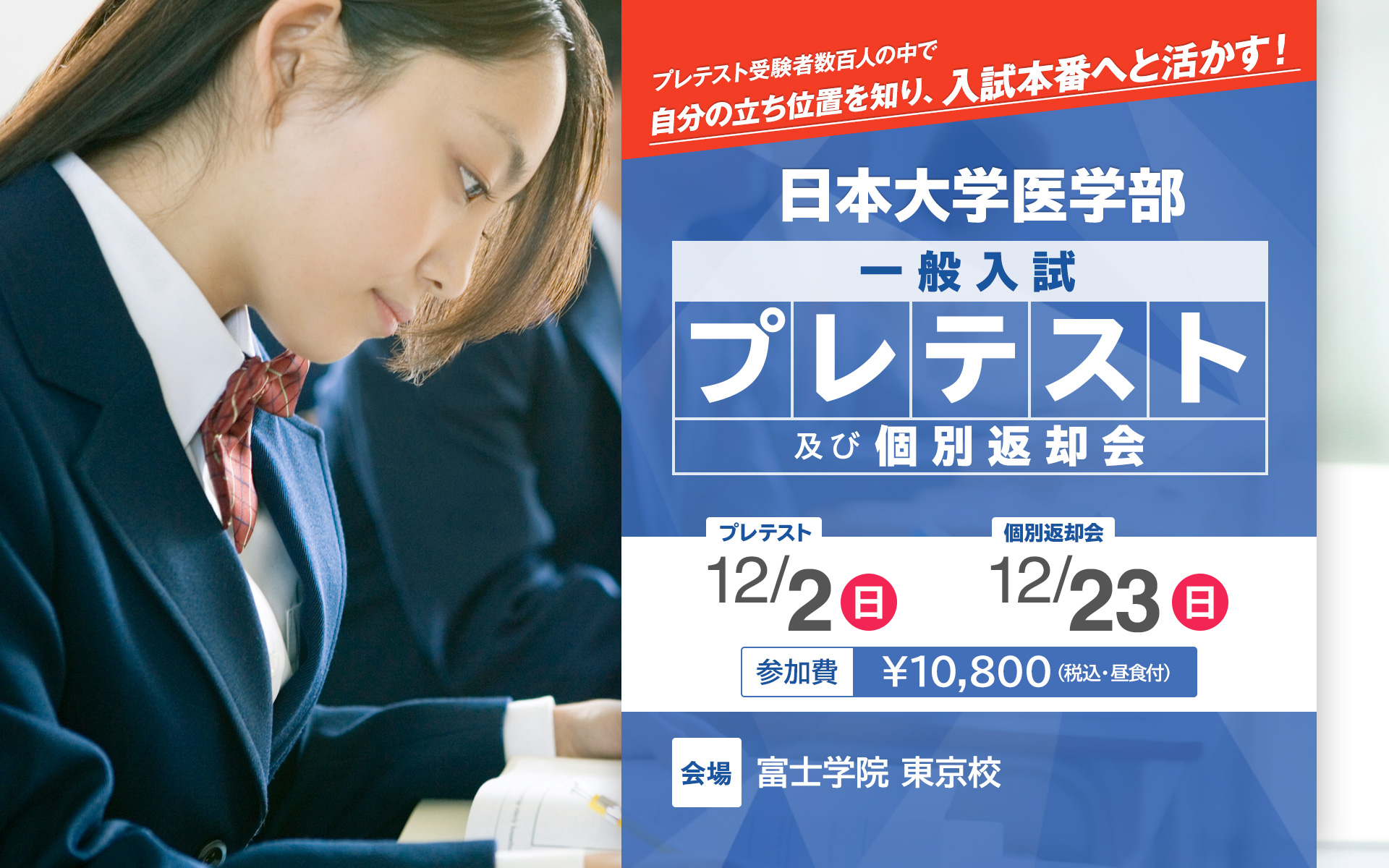 富士学院のプレテストは、これまで蓄積してきた過去の入試データをもとに作成しており、