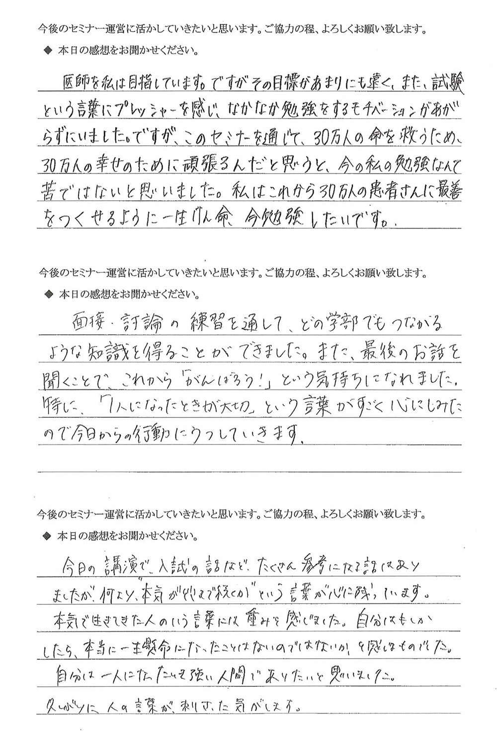 富士学院の面接指導は医学部合格だけではなく、〝医師として活躍していく為に必要な様々な資質〟を鍛えています。