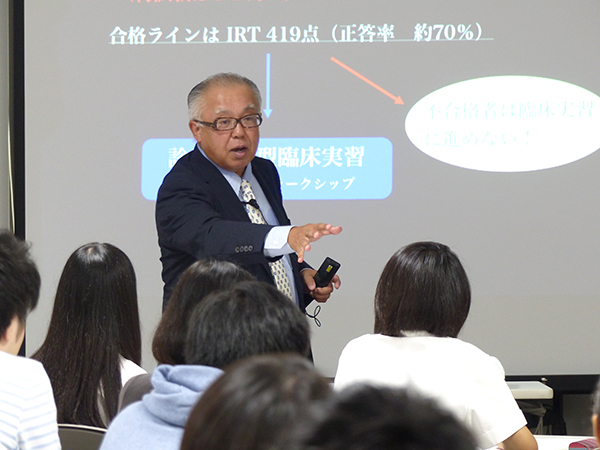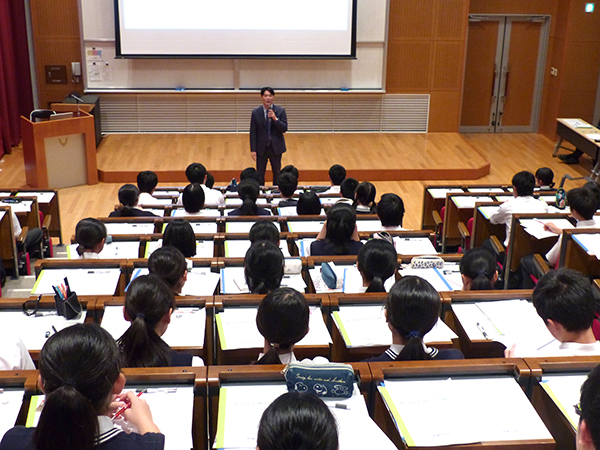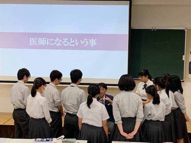 この講義は実際の医学部で行われている講義を前もって体験することにより、医学部に進学してからのイメージづくりと、自分が何のために勉強しているのか、どこを目指しているのかなど、生徒自身の自覚や、更なるやる気を促していくことを目標に行っています。