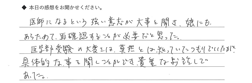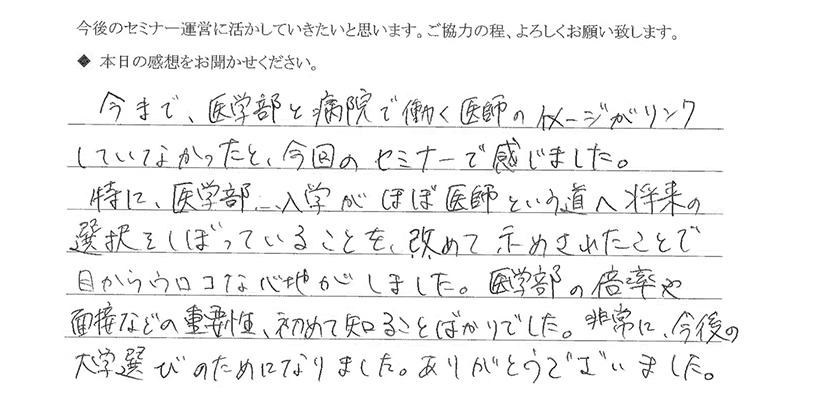 学校の中では経験できないこの「医学部受験の学習環境」に触れることは、中・高生にとっても大きな刺激となり、意識の向上を含め必ず今後の受験につながっていきます。