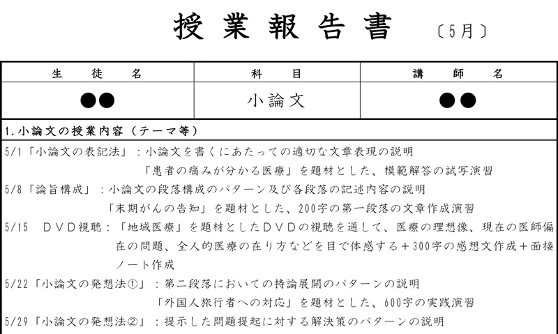 富士学院では毎月様々な題材で小論文指導を行っています。