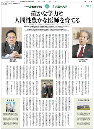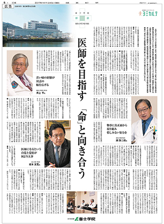 読売新聞(医学部を目指す若者たちへ)富士学院学院長×久留米大学副学長・医学部長 対談|富士学院学院長×福岡大学医学部長・病院長 鼎談