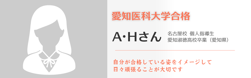 勉強のやり方については、とにかく英数のどちらか一つを得意にすると良いと思います。愛知医科大学の推薦入試は、他の人よりも試験が早いので、周りの雰囲気に流されず、春のうちから合格に向けて虎視眈々と努力できるかどうかによって、合否が分かれると思います。